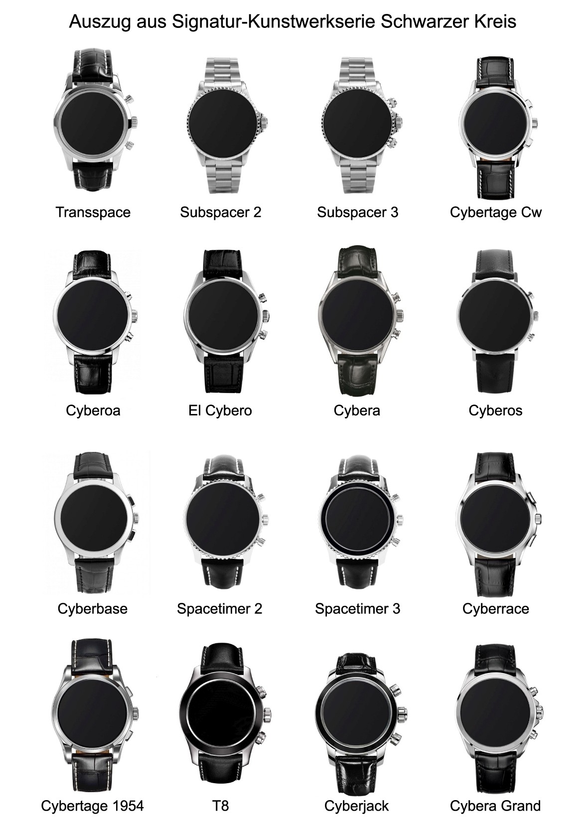 For strengthening the effect on the viewer and the expressiveness of the work of art discussed here, like the "Cyberplano", C.S. has chosen classic and widely distributed designs of mechanical wristwatches as blueprints and transformed them to ontologic devices or ontologic instruments accordingly. But thereby the recognition of a specific watch or watch brand, or a specific watchmaker just was not paramount.